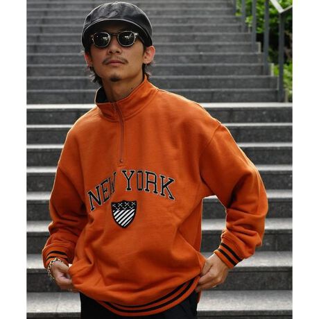 LINE RIB HZ SWEAT SHEELD PATCH/ラインリブ ハーフジップ パッチスウェ