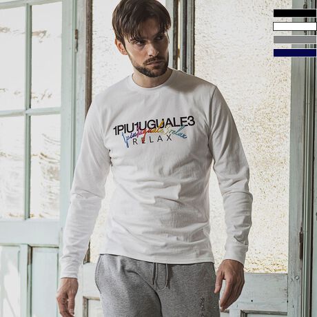 1PIU1UGUALE3 RELAXレインボー刺繍ダブルロゴ長袖Tシャツ