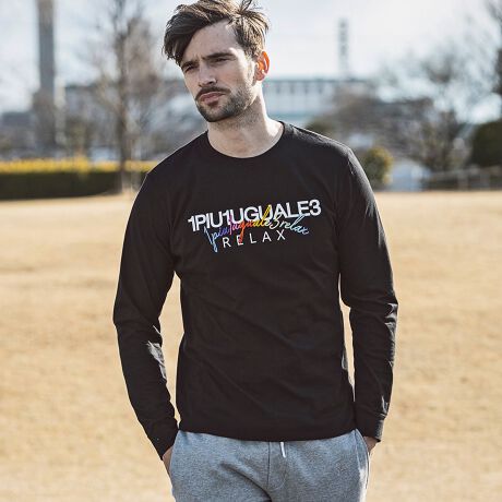 1PIU1UGUALE3 RELAXレインボー刺繍ダブルロゴ長袖Tシャツ