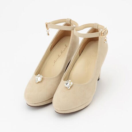 きらっと光るビジューのあしらいがお洒落なコンフォートパンプス。ベルト調整可能なチャームストラップ付きで安定感あるはき心地。フロントのビジューは取り外し可能で、異なる印象でシーンに合わせてスタイリング可能です。