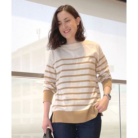 ■デザインシンプルなプルオーバーニット。一枚着でも安心な程よいゆとりと、着丈に仕上げました。裾にスリットがあることで、どんなボトムともバランス良く着こなせます。■素材トルコ綿とシルクをセミ梳毛引きした糸を使用しています。天然繊維ならではの風合いで肌あたりが柔らかく、通気性に優れた程よい光沢のある素材になっています。まだ素肌に着る季節なので素材は天然繊維にこだわりました。つるりとしたタッチよりも程よく温かみがある素材感なのでこれからの季節にも、春先の肌寒い季節にも長く着られるアイテムです。※採寸情報はサンプル商品のデータです。実際の商品と仕様が異なる場合がございます。※画像はサンプルのため実際の商品と仕様が異なる場合がございます。