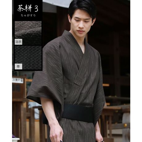 浴衣 メンズ しじら浴衣 ワンタッチ帯 下駄 扇子 巾着 5点セット
