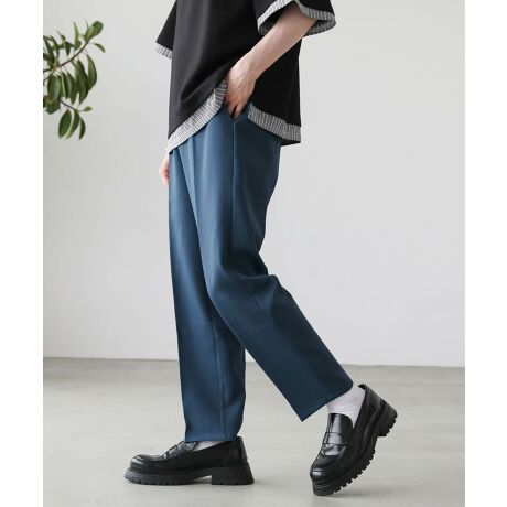 すっきりとしたテーパードシルエットのスラックス。ほどよくハリがありながらソフトで柔らかく品のある1枚です。センタープレスを施すことで脚のラインをすらっと綺麗に見せてくれます。ウエスト部分はゴム入りなため、紐で調整可能。定番で着回ししやすいブラック、チャコールに加え、淡いカラーのグレー系、存在感のあるレッドやイエローなどの9カラー展開。