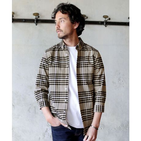ボタンダウン襟を採用したシャツ。襟の崩れを抑え、上品な首元を保ってくれるので、一日着用していても気兼ねなくお洒落を満喫できます。襟裏には飾り布が付けれているため、機能性だけでなく見た目にも工夫が凝らされた襟デザインになっています。