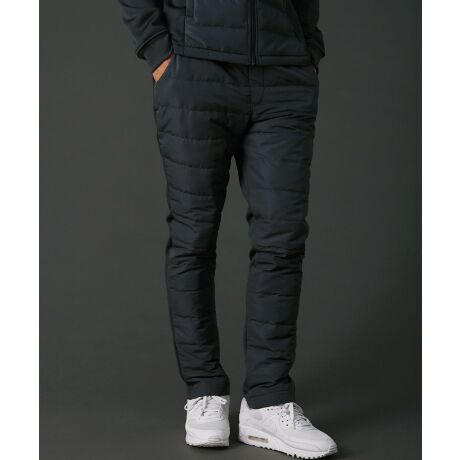 いくら暖かくて穿き心地が良くても、見た目がかっこよくなければコーディネートには取り入れられません。お洒落に見えることにも妥協せずデザインしました。前後ろ全周にダウンを詰めてしまうとモコモコとした不格好なシルエットになってしまうので、前と後ろとで生地が異なる切替デザインを採用し、ダウンフェザーはあえて前身頃側だけに詰めることに。イージー仕様のウエストにはベルトループも付け、ラクな穿き心地ながらタックインスタイルも楽しめる設計にいたしました。ゴルフウェアとしても活躍してくれる、暖かくてかっこいいボトムスです。