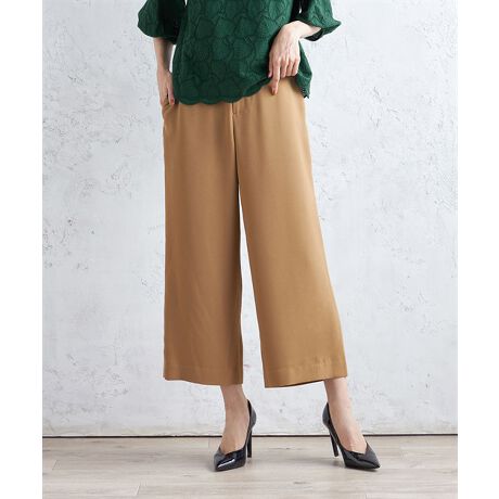 引き続きドレンドのワイドなシルエットがお洒落なボトム。裾はくるぶしがのぞくアンクル丈ですっきり軽やかなムードで履きこなせます。きちんと感があり、シックなムードの着こなしが完成するアイテムです。