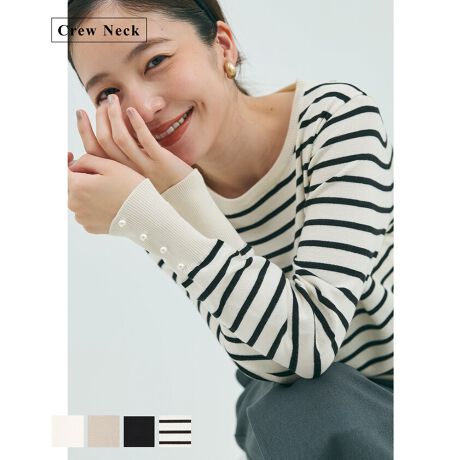 華やかでトレンド感のある袖パールデザインが女性らしいニット