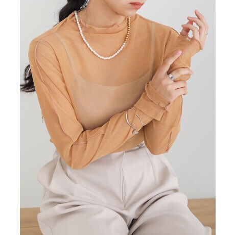 透け感を意識してTOPSとして1枚で着用したり、ジャンパースカートやジャケットのインナーとしてレイヤードスタイルを楽しんだり様々な着こなしができるアイテム。程よいハイネックと長めのお袖はレイヤードしたときにちらりと見えるので合わせるだけでおしゃれ度が増す1枚です。様々なコーディネートで合わせられ、ロングシーズン着用できるので活躍度間違いなし!画像一覧の中のコーディネート画像を見ていただいてもわかるくらい合わせやすいので1枚持っているとなんにでも合わせられるアイテムです。