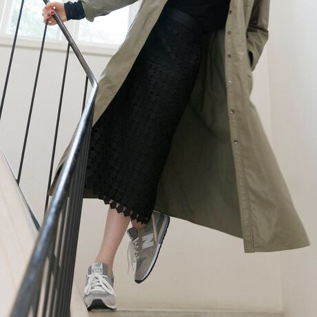 スウェットやパーカー合わせでカジュアルなフェミニンスタイルや、冬はふわふわ系のニット合わせで素材のコントラストを効かせるコーデもおすすめです。同素材を使用したレースポンチカットソーとセットアップでの着用もおすすめです。