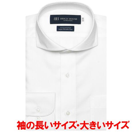 【超形態安定】 ホリゾンタルワイドカラー 綿100% 長袖ワイシャツ