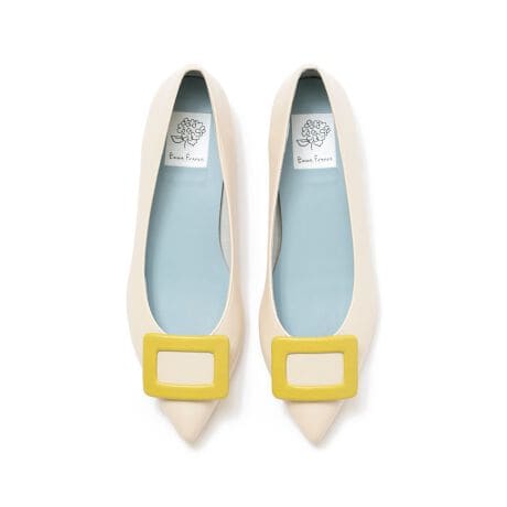 履き心地を追求したエマフランシスのバイカラーバックル サテンパンプス