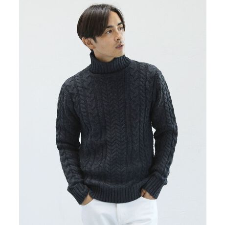 5GGアクリルフィッシャーマン総ケーブル編みタートルネックニット