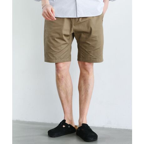 コーディネートを邪魔しない、シンプルなデザインのコットンツイルショーツ。横に広がらない細めのシルエットに設計し、ハリのあるツイル生地を用いることで子供っぽい印象にならないように作り上げています。ウエストはゴムになっており、脱ぎ穿きも楽々。爽やかでラフな着こなしが楽しめる、大人向けの夏パンツです。