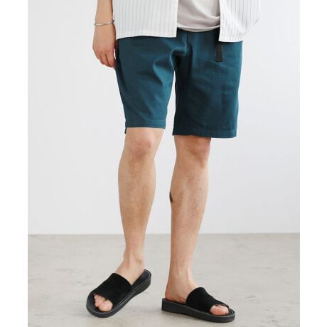 コーディネートを邪魔しない、シンプルなデザインのコットンツイルショーツ。横に広がらない細めのシルエットに設計し、ハリのあるツイル生地を用いることで子供っぽい印象にならないように作り上げています。ウエストはゴムになっており、脱ぎ穿きも楽々。爽やかでラフな着こなしが楽しめる、大人向けの夏パンツです。