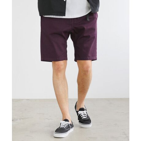 コーディネートを邪魔しない、シンプルなデザインのコットンツイルショーツ。横に広がらない細めのシルエットに設計し、ハリのあるツイル生地を用いることで子供っぽい印象にならないように作り上げています。ウエストはゴムになっており、脱ぎ穿きも楽々。爽やかでラフな着こなしが楽しめる、大人向けの夏パンツです。