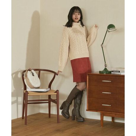 【商品特徴】クラシカルムード抜群のフェイクスエードミニスカートです。台形シルエットにウエストのビットパーツが華やかなポイントになります。腰まわりすっきり仕上げ、トップスをINするとスタイルアップを狙えます。シーズンライクな素材とカラーが着こなしの主役になれる一枚です。【スタイリング】ゆるニットOUTスタイル、ボウタイやレーストップスをINするコーディネートがおすすめです。