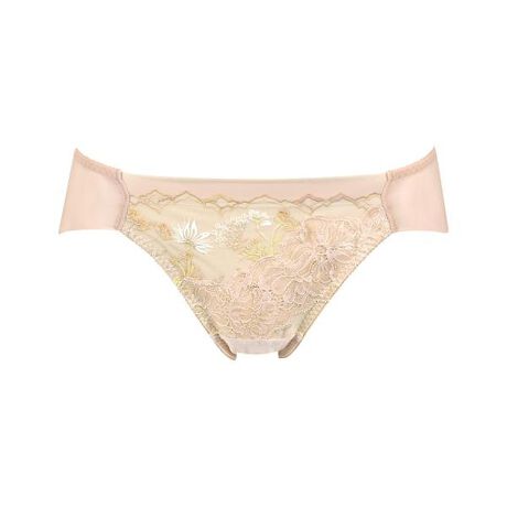 ●ラクなはきごこち 前ウエストは折り返し始末でくいこみにくく、圧迫感を軽減 後ろウエストと前裾は伸びのよいストレッチテープを使用・フロントの小花柄のエンブロイダリーレースと繊細なラッセルレースが華やかなデザイン