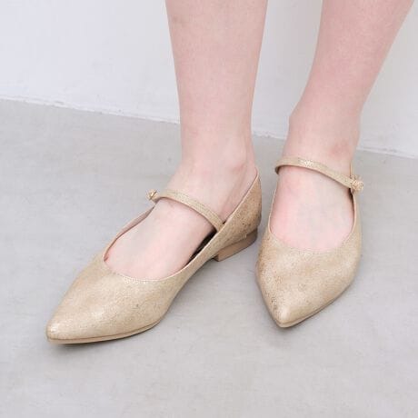 ストラップがあって安心!かかとが柔らかいので靴擦れの心配も少ないです。ポインテッドトゥでフラットでもスッキリ見えます。