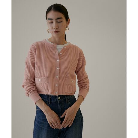 【柔らかく滑らかな着心地がポイントのクリーミーコットンからスタイルアップを叶えてくれるショート丈のクルーネックカーディガンが登場】