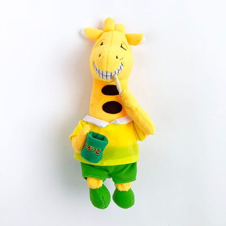美味しすぎるじゃがりこのあの、キリンさんがマスコットとぬいぐるみになってデビュー。マスコット約11cm、ぬいぐるみS約23cm、ぬいぐるみMなんと約27cm。サイズ違いで展開しているのでおすきなサイズをどうぞ。じゃがりこを食べて嬉しそうです。