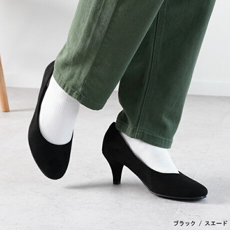 【詳細】サイズ:20cm〜27cmヒール高:6.5cm甲幅:約8.0cm甲外周り:約14.5cm素材:合成皮革片足重さ:204gクッション中敷・美脚ヒール・ノンスリップソール・同色共巻ヒール・甲高幅広 対応身長163cm 体重47kg 足のサイズ24.0cm / 着用:24.0cm