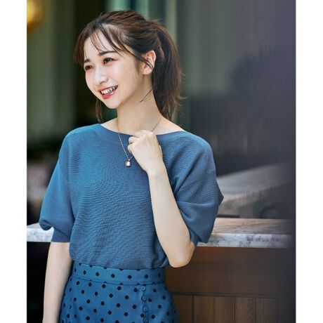 サスティナブルなエコヴェロレーヨンを使用した五分袖ニット