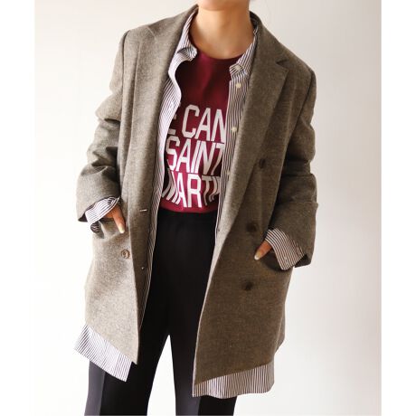 リサイクルウール混のマニッシュな雰囲気のツイード素材を使用。