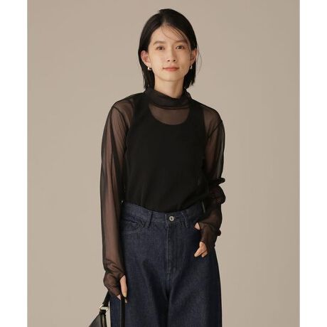 ・薄手の繊細なシアー素材が女性らしいタートルプルオーバー