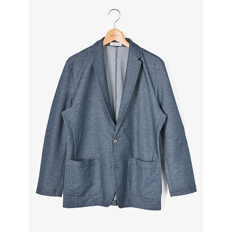 デニム調のシャンブレージャージを使用したジャケット。内側にポリエステル糸を配することでベタ付かない肌触りの良さを実現し、晩夏にピッタリの素材です。程よくしっかりした生地感で、キレイなシルエットに仕上げています。テーラードカラーは上品さを感じさせ、ちょっとしたお出掛けにも使える便利なアイテムです。