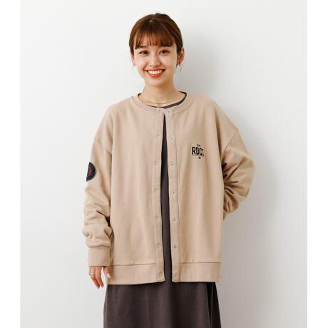 スタジャンのディティールを落とし込んだスポーティーなスウェットカーデ。プリントとレトロなカラーのワッペンをプラスしたカジュアルデザイン。全体的に丸みを帯びるようなシルエットと、ボリュームスリーブがポイント。ボタンを開閉することで着方をアレンジでき、着回し力抜群のアイテムです。
