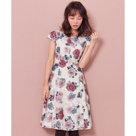 コサージュで有名なATERIER SENKAとコラボレーションしたドレスです。プリント柄はTOCCAの為に組んでいただいたアトリエセンカのコサージュをプリントしています。プリント下地は透け感のあるオーガンジージャカードで張り感が美しいシルエット。柄に涼やかさと軽やかさがプラスされ1年を通してご着用いただけます。