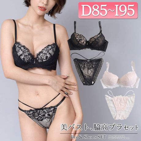 【大きいサイズ】脇高花柄レースブラジャー&ショーツ 大きいサイズ レディース インナー 下着 セット