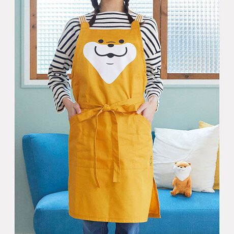 大きくカワウソのお顔がデザインされたエプロンです。肩紐はストライプでオシャレ!裾にはスリットが入っていて、動きの邪魔をしません。ワンポイントのカモちゃんがカワイイ♪サイズ:M〜L 着丈約80cm(肩ひも下から裾まで)