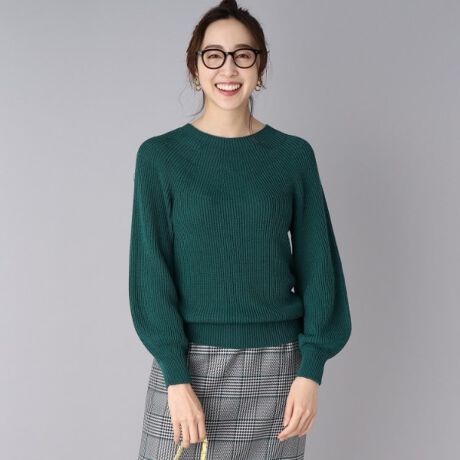 袖のパフスリーブは程よくふんわりとしたシルエットですがネックが詰まっているので甘くなりすぎないデザイン。