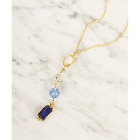 ワイスチャームの【9月誕生石ラピスラズリ】ラピスラズリ×ムーンストーンネックレス(ゴールドフィルド)。