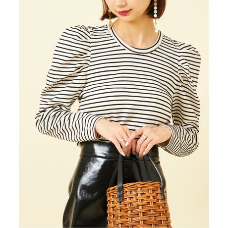 ボリュームのあるパフスリーブが特徴的なボーダーカットソーです。
