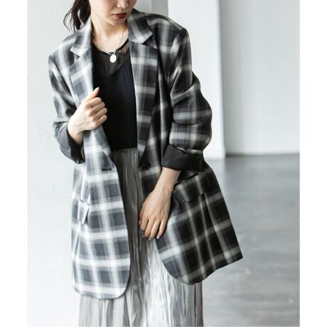 大きめのチェック柄がアクセントとなり、羽織るだけで今年らしいスタイリングに昇華。