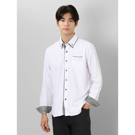 セマンティックデザイン アーガイルドビー 2枚衿ボタンダウン長袖シャツ