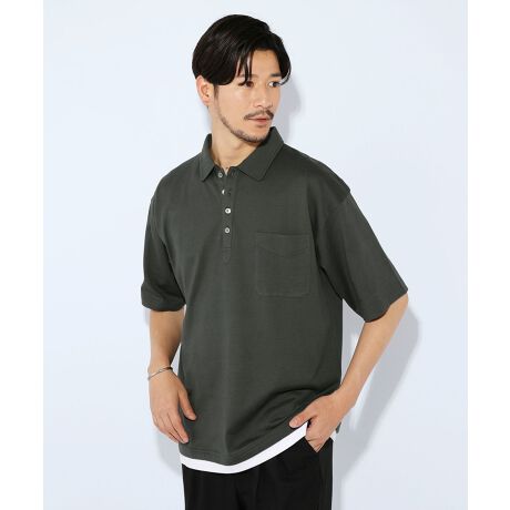 日本製スーパー度詰め天竺裾レイヤードビッグポロシャツ