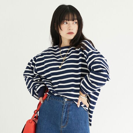 ゆるっとしたシルエットが抜け感を演出する、大人カジュアルに必須のボーダーTシャツ。