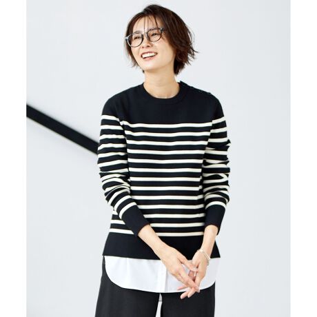 【洗える】ミラノリブバスクボーダー ニット