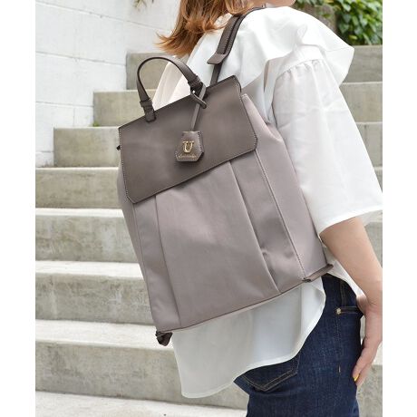カジュアルな印象が強いリュックもレザーとナイロンのコンビネーションでリッチなイメージに。