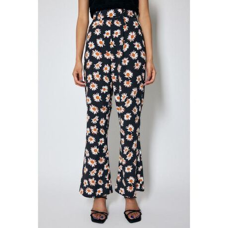 【MARGUERITE FLARE PANTS】オリジナルの花柄をプリントしたフレアパンツ。とろみのあるジョーゼット素材を使用し、夏でも快適にお過ごしいただける穿き心地です。ウエストゴムの仕様なので、ストレスフリーに着用して頂けます。