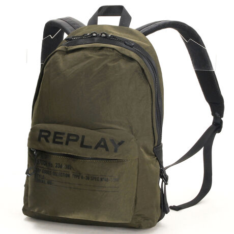 ソフトなナイロン素材を使用、フロントポケットにロゴプリント、天ファスナーは止水ジップ仕様、トップハンドル、調節可能なショルダーベルト、 横29.5センチメートル、 高さ45センチメートル、 マチ12.5センチメートル。