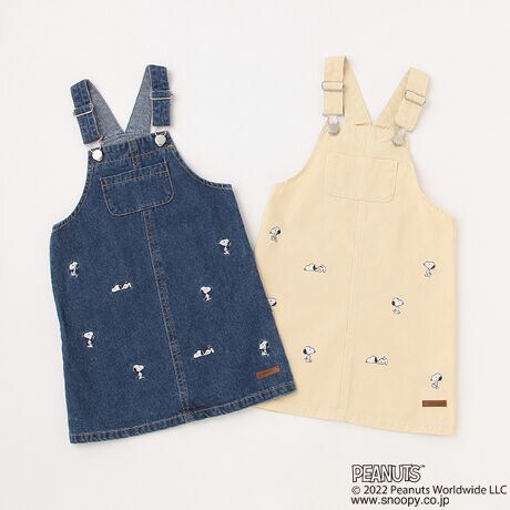 さまざまなポージングをするスヌーピー刺しゅうが愛らしいPEANUTSコラボのジャンパースカートです。前後にちりばめたデザインでどこから見てもおしゃれな雰囲気がただようアイテム。トップスをシンプルにしてカジュアルに楽しんだり、袖にデザインのあるインナーを合わせたりといろいろ試せる優れものです。刺しゅうの裏に「あて布」はございません。内側にはお名前を記入できるタグつき。【おすすめの着用時期は秋冬シーズン】【透け感】透けない【生地の厚さ】普通【伸縮性】なし【裏地】なし【ポケット】あり【アジャスター】なし