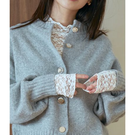 ・バックにスリット開きパール釦止めの仕様で着脱しやすく、フェミニンな印象に。