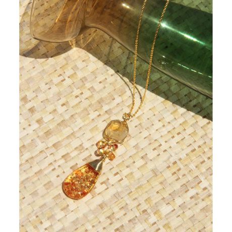 ワイスチャームの【チェコ製ガラスビーズ】アンバー×シトリンビーズネックレス(ゴールドフィルド)。