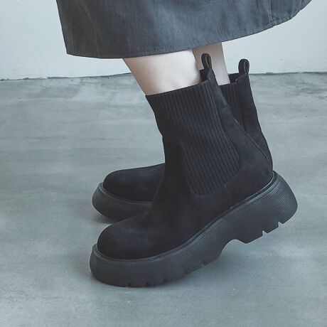 旬な厚底デザインでスタイルアップ。厚底ソールが今年らしく、スタイルアップできるサイドゴアブーツです。