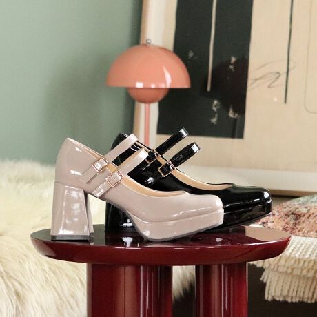 厚底ダブルストラップパンプス