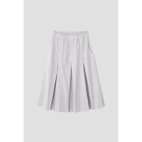 高密度に織り上げたコットン素材のフレアスカート。糸に自然な凹凸があり、ムラ糸を使ったような表情が特徴。ウエストからヒップはすっきりしたラインで、ヒップからは分量の多いプリーツで構成されたデザイン。